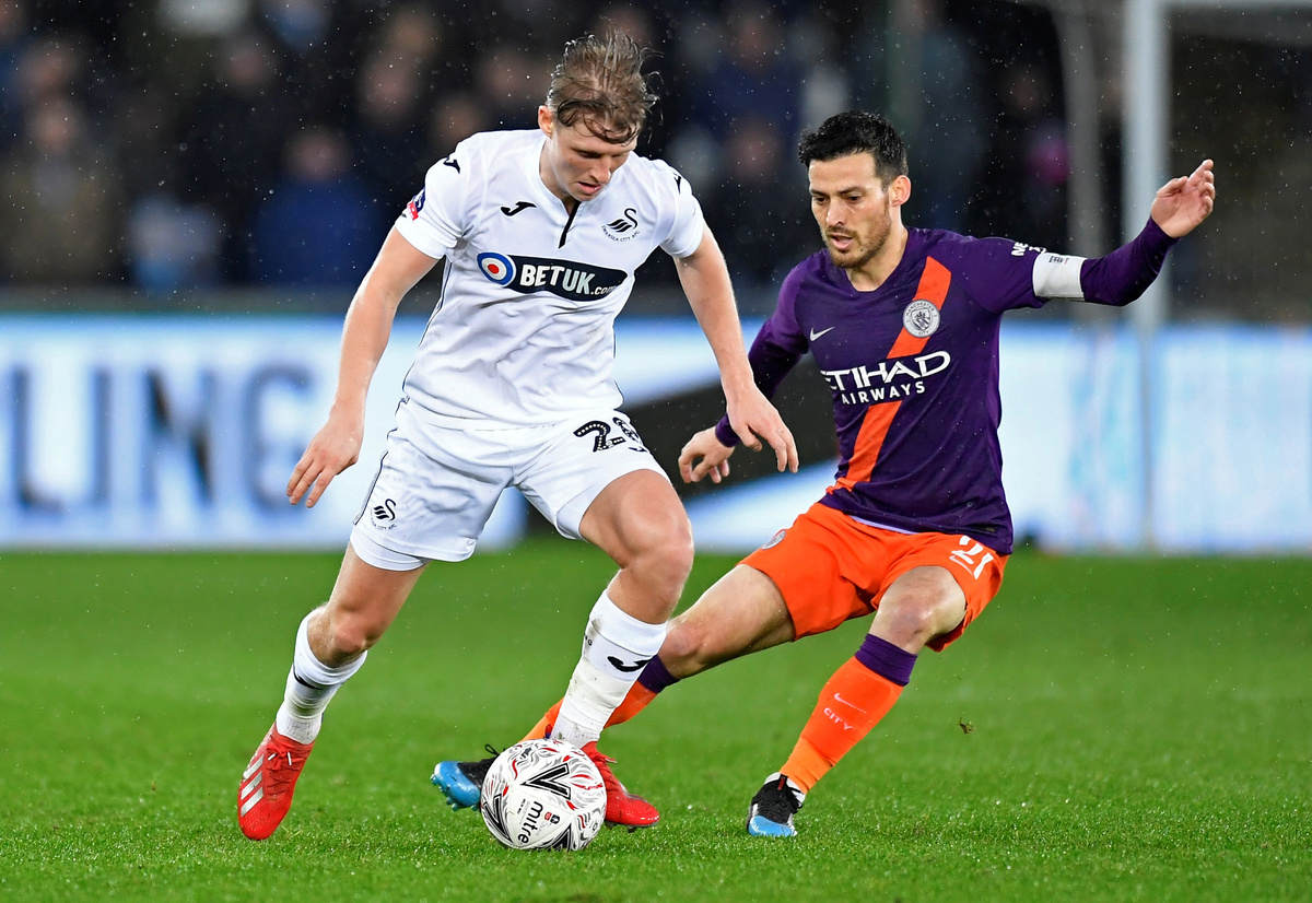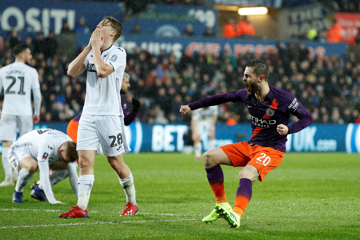 The Premier League side struggled to break Swansea down after the break, but Bernardo Silva's goal in the 68th minute got the visitors back in the match.