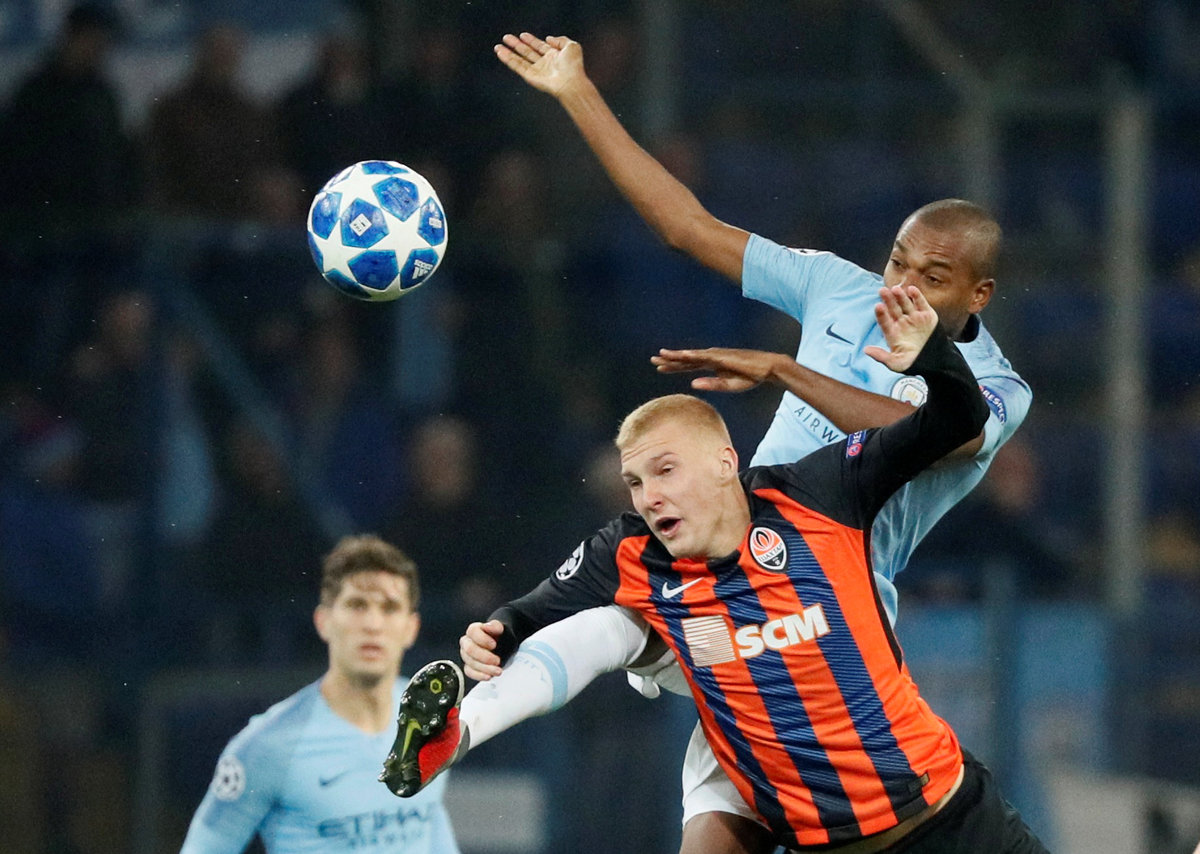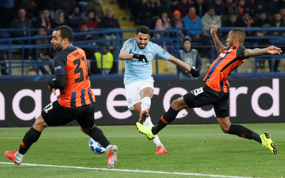 Soccer Football - Champions League - Group Stage - Group F - Shakhtar Donetsk v Manchester City - Metalist Stadium, Kharkiv, Ukraine - October 23, 2018 Manchester City's David Silva in action with Shakhtar Donetsk's Mykola Matviyenko REUTERS/Gleb GaranichSoccer Football - Champions League - Group Stage - Group F - Shakhtar Donetsk v Manchester City - Metalist Stadium, Kharkiv, Ukraine - October 23, 2018 Shakhtar Donetsk's Andriy Pyatov reacts after Manchester City's David Silva scored their first goal REUTERS/Gleb GaranichSoccer Football - Champions League - Group Stage - Group F - Shakhtar Donetsk v Manchester City - Metalist Stadium, Kharkiv, Ukraine - October 23, 2018 Manchester City's Aymeric Laporte scores their second goal REUTERS/Gleb GaranichSoccer Football - Champions League - Group Stage - Group F - Shakhtar Donetsk v Manchester City - Metalist Stadium, Kharkiv, Ukraine - October 23, 2018 Manchester City's Aymeric Laporte celebrates scoring their second goal REUTERS/Gleb GaranichSoccer Football - Champions League - Group Stage - Group F - Shakhtar Donetsk v Manchester City - Metalist Stadium, Kharkiv, Ukraine - October 23, 2018 Manchester City's Fernandinho in action with Shakhtar Donetsk's Viktor Kovalenko REUTERS/Gleb GaranichSoccer Football - Champions League - Group Stage - Group F - Shakhtar Donetsk v Manchester City - Metalist Stadium, Kharkiv, Ukraine - October 23, 2018 Manchester City's Riyad Mahrez shoots at goal REUTERS/Gleb GaranichSoccer Football - Champions League - Group Stage - Group F - Shakhtar Donetsk v Manchester City - Metalist Stadium, Kharkiv, Ukraine - October 23, 2018 Shakhtar Donetsk's Ismaily in action with Manchester City's Riyad Mahrez REUTERS/Gleb GaranichSoccer Football - Champions League - Group Stage - Group F - Shakhtar Donetsk v Manchester City - Metalist Stadium, Kharkiv, Ukraine - October 23, 2018 Manchester City's David Silva scores their first goal REUTERS/Gleb GaranichSoccer Football - Champions League - Group Stage - Group F - Shakhtar Donetsk v Manchester City - Metalist Stadium, Kharkiv, Ukraine - October 23, 2018 Manchester City's Bernardo Silva celebrates scoring their third goal REUTERS/Gleb GaranichSoccer Football - Champions League - Group Stage - Group F - Shakhtar Donetsk v Manchester City - Metalist Stadium, Kharkiv, Ukraine - October 23, 2018 Manchester City's Phil Foden, Raheem Sterling and Bernardo Silva celebrate after the match REUTERS/Gleb Garanich