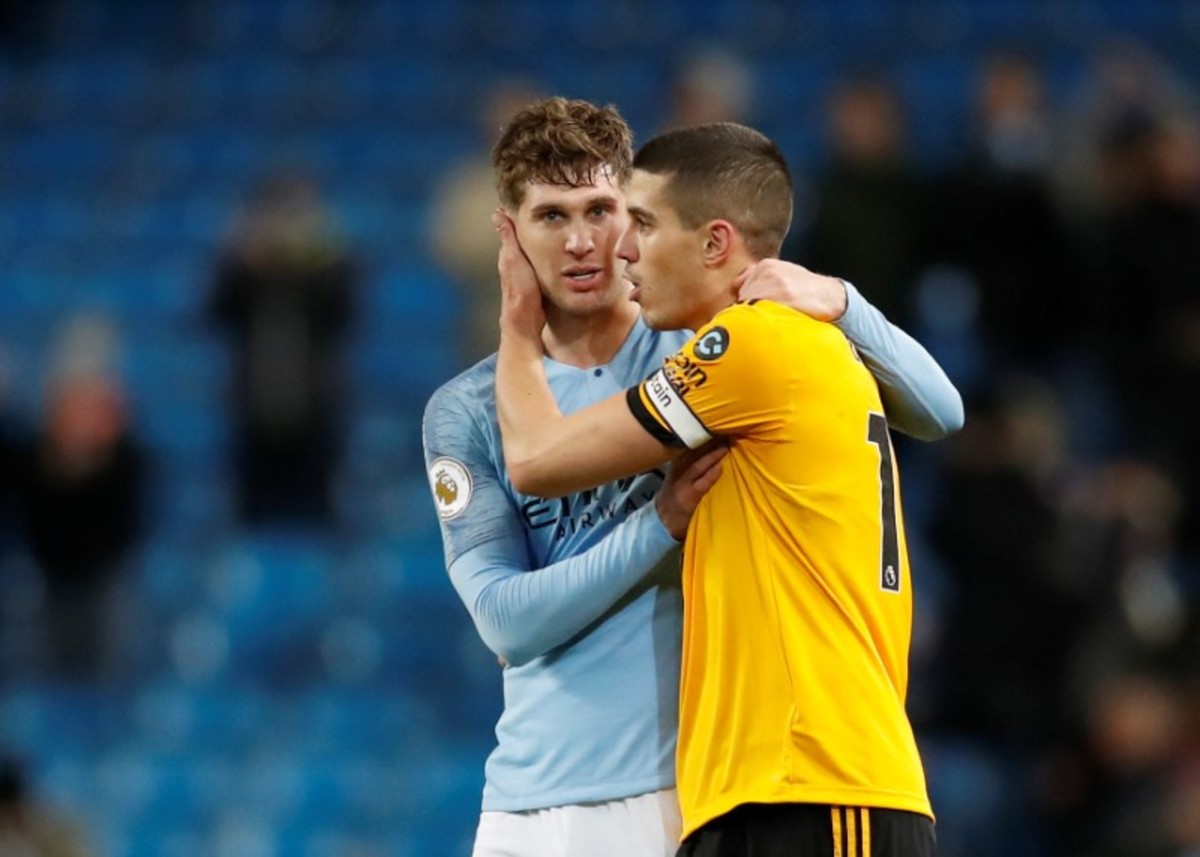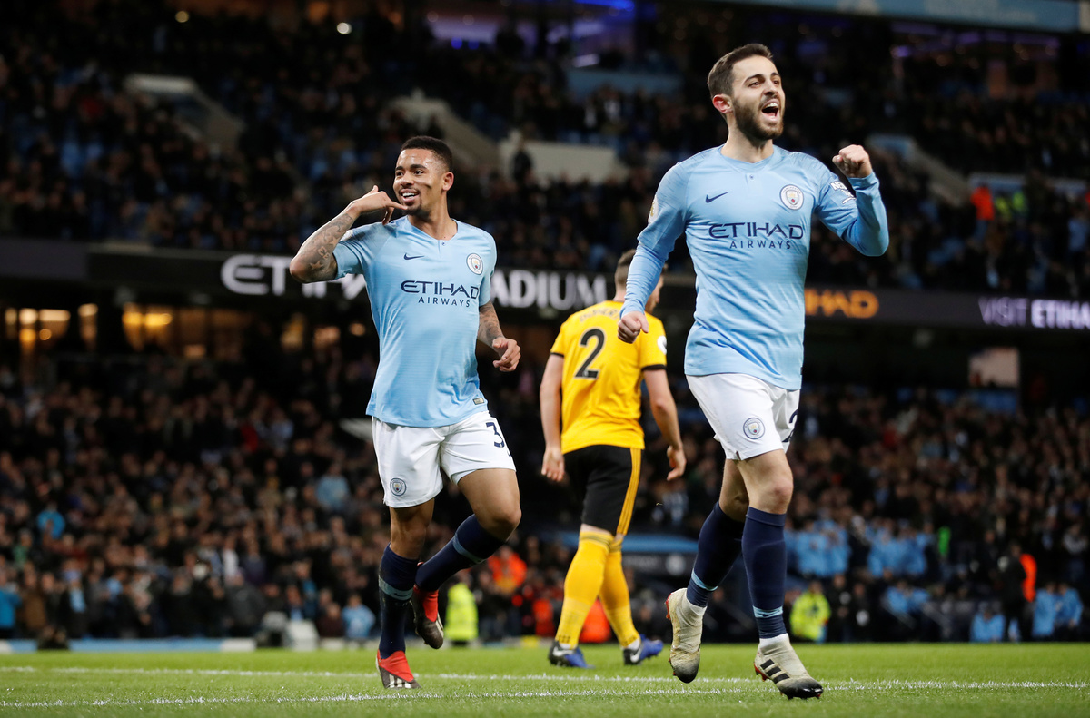 Soccer Football - Premier League - Manchester City v Wolverhampton Wanderers - Etihad Stadium, Manchester, Britain - January 14, 2019 Wolverhampton Wanderers' Conor Coady and Manchester City's John Stones after the match Action Images via Reuters/Carl Recine Soccer Football - Premier League - Manchester City v Wolverhampton Wanderers - Etihad Stadium, Manchester, Britain - January 14, 2019 Wolverhampton Wanderers manager Nuno Espirito Santo shakes hands with Manchester City manager Pep Guardiola after the match REUTERS/Jon Super Soccer Football - Premier League - Manchester City v Wolverhampton Wanderers - Etihad Stadium, Manchester, Britain - January 14, 2019 Wolverhampton Wanderers' Ruben Neves in action with Manchester City's Raheem Sterling REUTERS/Jon Super Soccer Football - Premier League - Manchester City v Wolverhampton Wanderers - Etihad Stadium, Manchester, Britain - January 14, 2019 Manchester City's Kevin De Bruyne in action with Wolverhampton Wanderers' Conor Coady REUTERS/Jon Super Soccer Football - Premier League - Manchester City v Wolverhampton Wanderers - Etihad Stadium, Manchester, Britain - January 14, 2019 Manchester City's Leroy Sane in action with Wolverhampton Wanderers' Ruben Neves, Romain Saiss and Ryan Bennett REUTERS/Jon Super Soccer Football - Premier League - Manchester City v Wolverhampton Wanderers - Etihad Stadium, Manchester, Britain - January 14, 2019 Manchester City's Gabriel Jesus scores their first goal Action Images via Reuters/Carl Recine Soccer Football - Premier League - Manchester City v Wolverhampton Wanderers - Etihad Stadium, Manchester, Britain - January 14, 2019 Manchester City's Gabriel Jesus scores their second goal from a penalty REUTERS/Jon Super Soccer Football - Premier League - Manchester City v Wolverhampton Wanderers - Etihad Stadium, Manchester, Britain - January 14, 2019 Wolverhampton Wanderers' Willy Boly is shown a red card by referee Craig Pawson Action Images via Reuters/Carl RecineSoccer Football - Premier League - Manchester City v Wolverhampton Wanderers - Etihad Stadium, Manchester, Britain - January 14, 2019 Manchester City's Gabriel Jesus celebrates scoring their first goal with team mates as Wolverhampton Wanderers' Ryan Bennett reacts REUTERS/Jon Super Soccer Football - Premier League - Manchester City v Wolverhampton Wanderers - Etihad Stadium, Manchester, Britain - January 14, 2019 Manchester City's Gabriel Jesus scores their first goal Action Images via Reuters/Carl Recine Soccer Football - Premier League - Manchester City v Wolverhampton Wanderers - Etihad Stadium, Manchester, Britain - January 14, 2019 Manchester City's Gabriel Jesus celebrates scoring their first goal as Wolverhampton Wanderers' Rui Patricio reacts REUTERS/Jon Super Soccer Football - Premier League - Manchester City v Wolverhampton Wanderers - Etihad Stadium, Manchester, Britain - January 14, 2019 Manchester City's Gabriel Jesus celebrates scoring their first goal Action Images via Reuters/Carl Recine Soccer Football - Premier League - Manchester City v Wolverhampton Wanderers - Etihad Stadium, Manchester, Britain - January 14, 2019 Manchester City's Gabriel Jesus celebrates scoring their first goal with team mates Action Images via Reuters/Carl Recine Soccer Football - Premier League - Manchester City v Wolverhampton Wanderers - Etihad Stadium, Manchester, Britain - January 14, 2019 Manchester City's Gabriel Jesus and Leroy Sane in action with Wolverhampton Wanderers' Joao Moutinho Action Images via Reuters/Carl Recine Soccer Football - Premier League - Manchester City v Wolverhampton Wanderers - Etihad Stadium, Manchester, Britain - January 14, 2019 Manchester City's David Silva in action with Wolverhampton Wanderers' Matt Doherty Action Images via Reuters/Carl Recine