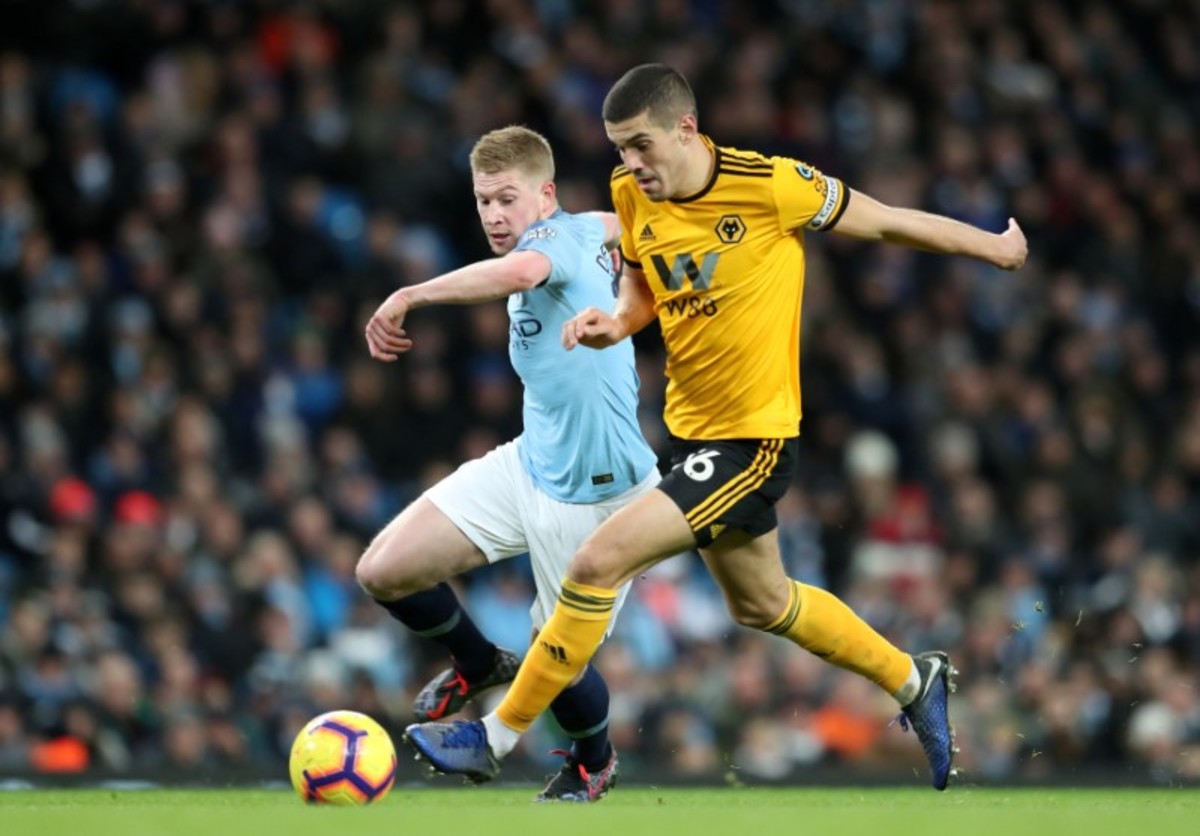 To their credit Wolves were diligent in defence after the break and restricted City's chances although they did concede again when substitute Kevin de Bruyne whipped in a cross that glanced in off Wolves' Conor Coady.