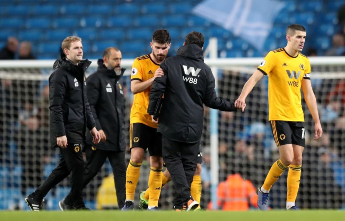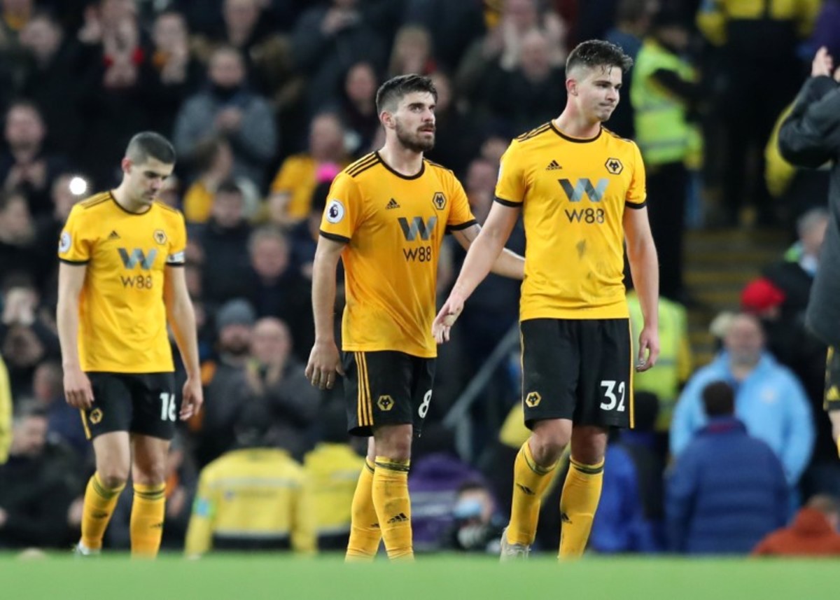 Soccer Football - Premier League - Manchester City v Wolverhampton Wanderers - Etihad Stadium, Manchester, Britain - January 14, 2019 Wolverhampton Wanderers' Ruben Neves and Conor Coady react after the match REUTERS/Jon Super