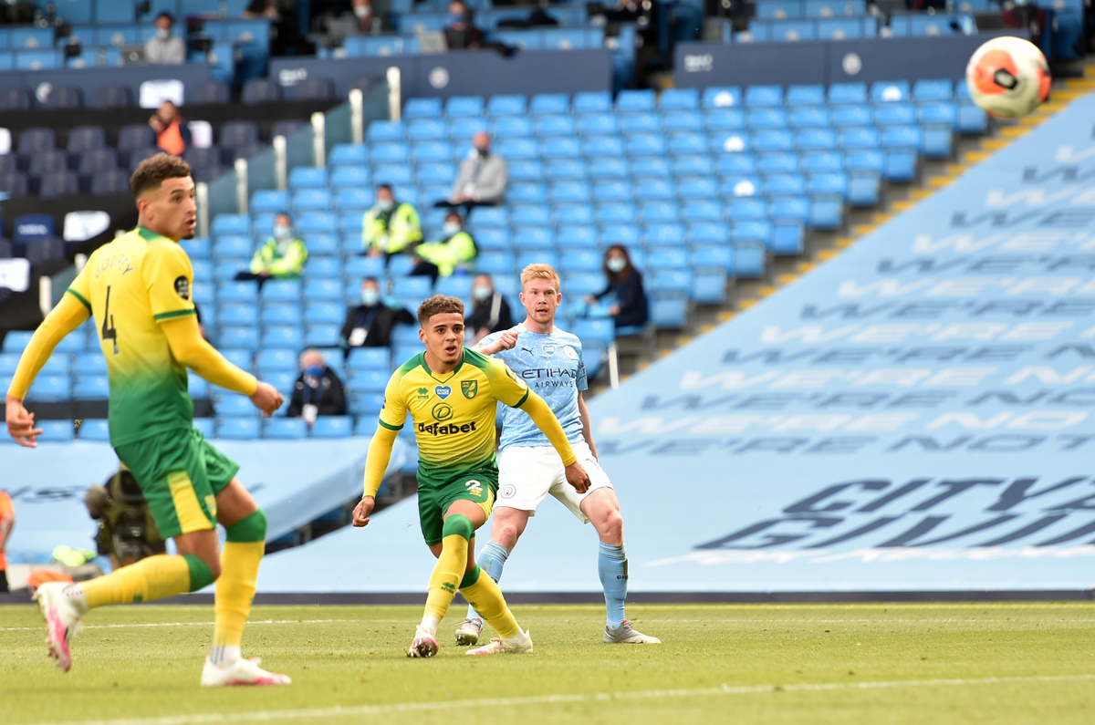 Belgium international De Bruyne added the second with a sumptuous strike just before halftime, collecting Kyle Walker's pass on the edge of the box and curling the ball past Norwich keeper Tim Krul and into the top corner.