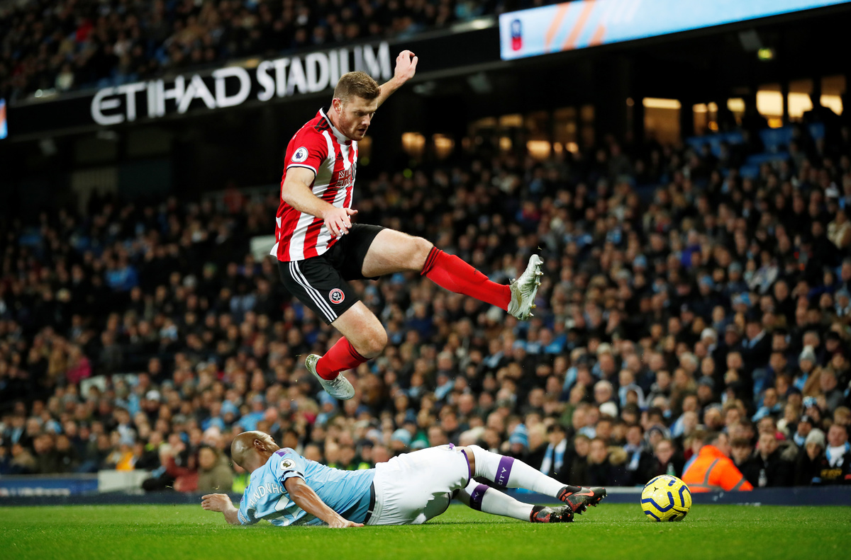 Soccer Football - Premier League - Manchester City v Sheffield United - Etihad Stadium, Manchester, Britain - December 29, 2019 Manchester City's Oleksandr Zinchenko in action with Sheffield United's George Baldock REUTERS/Phil Noble