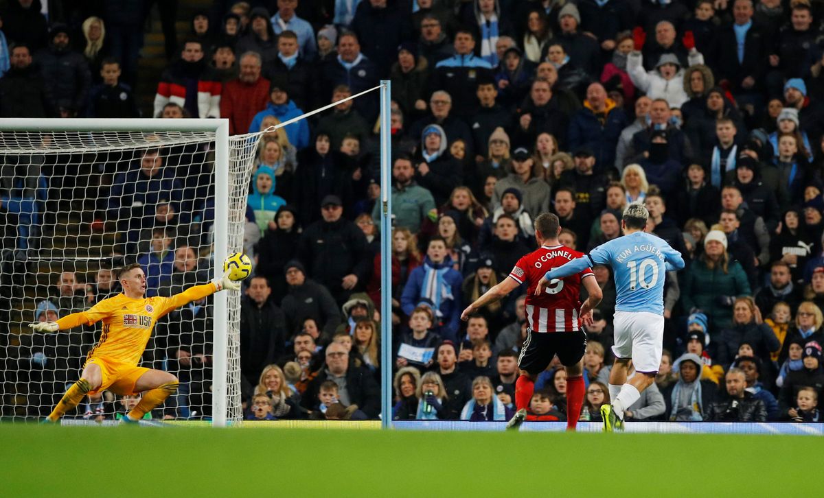 Soccer Football - Premier League - Manchester City v Sheffield United - Etihad Stadium, Manchester, Britain - December 29, 2019 Manchester City's Sergio Aguero scores their first goal REUTERS/Phil Noble