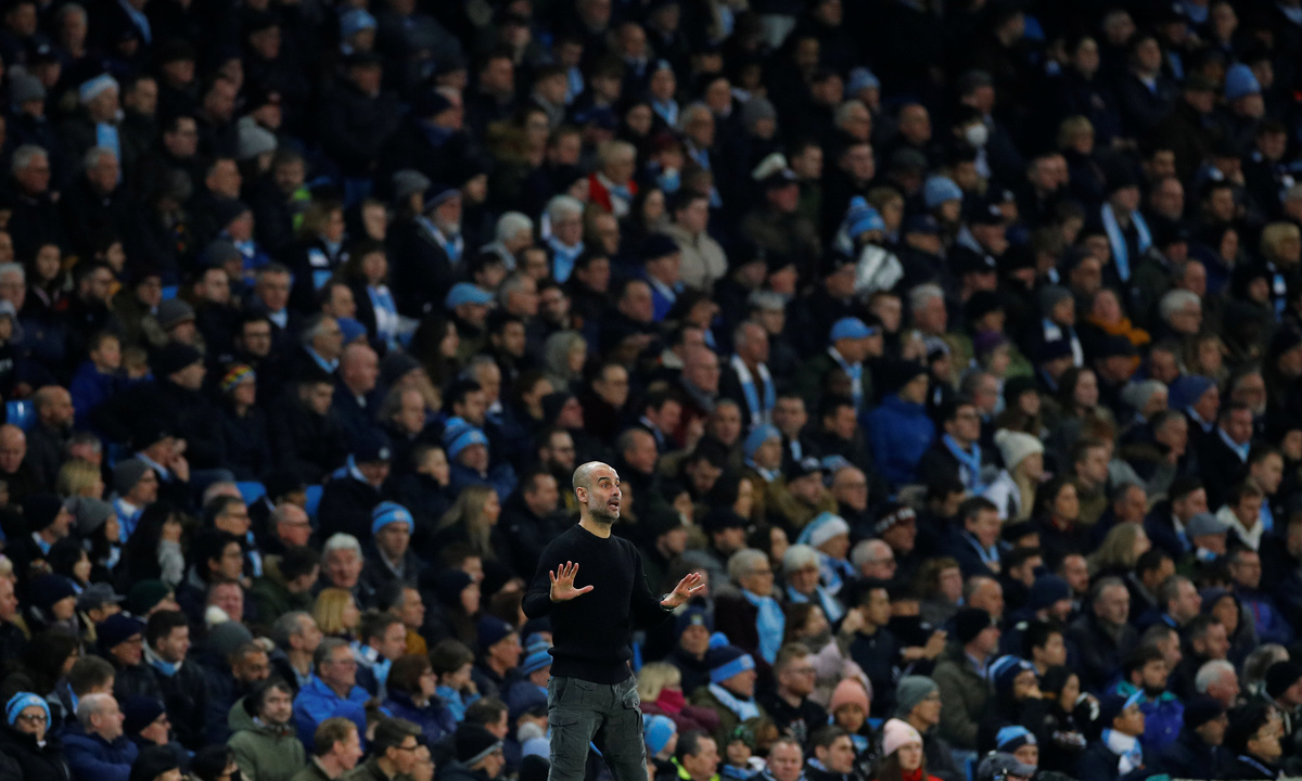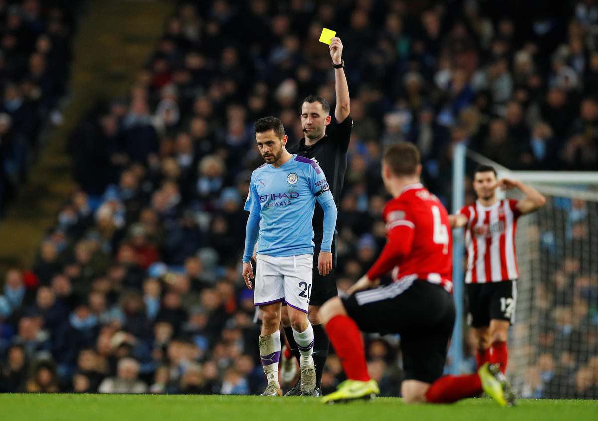 Soccer Football - Premier League - Manchester City v Sheffield United - Etihad Stadium, Manchester, Britain - December 29, 2019 Manchester City manager Pep Guardiola REUTERS/Phil Noble Soccer Football - Premier League - Manchester City v Sheffield United - Etihad Stadium, Manchester, Britain - December 29, 2019 Manchester City's Bernardo Silva is booked by referee Chris Kavanagh REUTERS/Phil Noble Soccer Football - Premier League - Manchester City v Sheffield United - Etihad Stadium, Manchester, Britain - December 29, 2019 Sheffield United's Lys Mousset scores a goal which is then disallowed Action Images via Reuters/Andrew Boyers Soccer Football - Premier League - Manchester City v Sheffield United - Etihad Stadium, Manchester, Britain - December 29, 2019 Sheffield United's John Egan in action Action Images via Reuters/Andrew Boyers Soccer Football - Premier League - Manchester City v Sheffield United - Etihad Stadium, Manchester, Britain - December 29, 2019 Manchester City's Raheem Sterling in action with Sheffield United's Chris Basham REUTERS/Phil Noble Soccer Football - Premier League - Manchester City v Sheffield United - Etihad Stadium, Manchester, Britain - December 29, 2019 Sheffield United's Lys Mousset in action with Manchester City's Eric Garcia Action Images via Reuters/Andrew Boyers Soccer Football - Premier League - Manchester City v Sheffield United - Etihad Stadium, Manchester, Britain - December 29, 2019 Sheffield United's Jack O'Connell in action with Manchester City's Fernandinho Action Images via Reuters/Andrew Boyers Soccer Football - Premier League - Manchester City v Sheffield United - Etihad Stadium, Manchester, Britain - December 29, 2019 Sheffield United's Enda Stevens in action Action Images via Reuters/Andrew Boyers