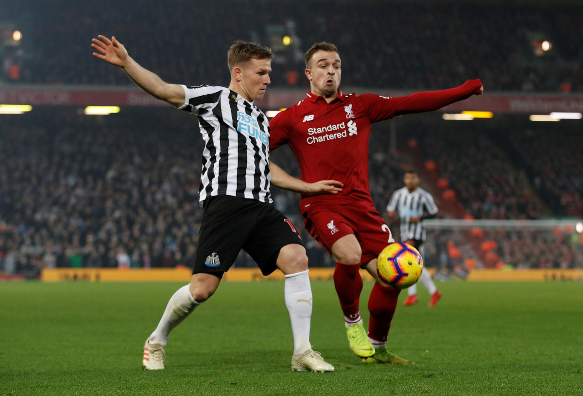 Liverpool are still six points out in front and remain unbeaten after goals from Dejan Lovren, Mohamed Salah (penalty), Xherdan Shaqiri and Fabinho condemned Newcastle to their 10th defeat of the season.