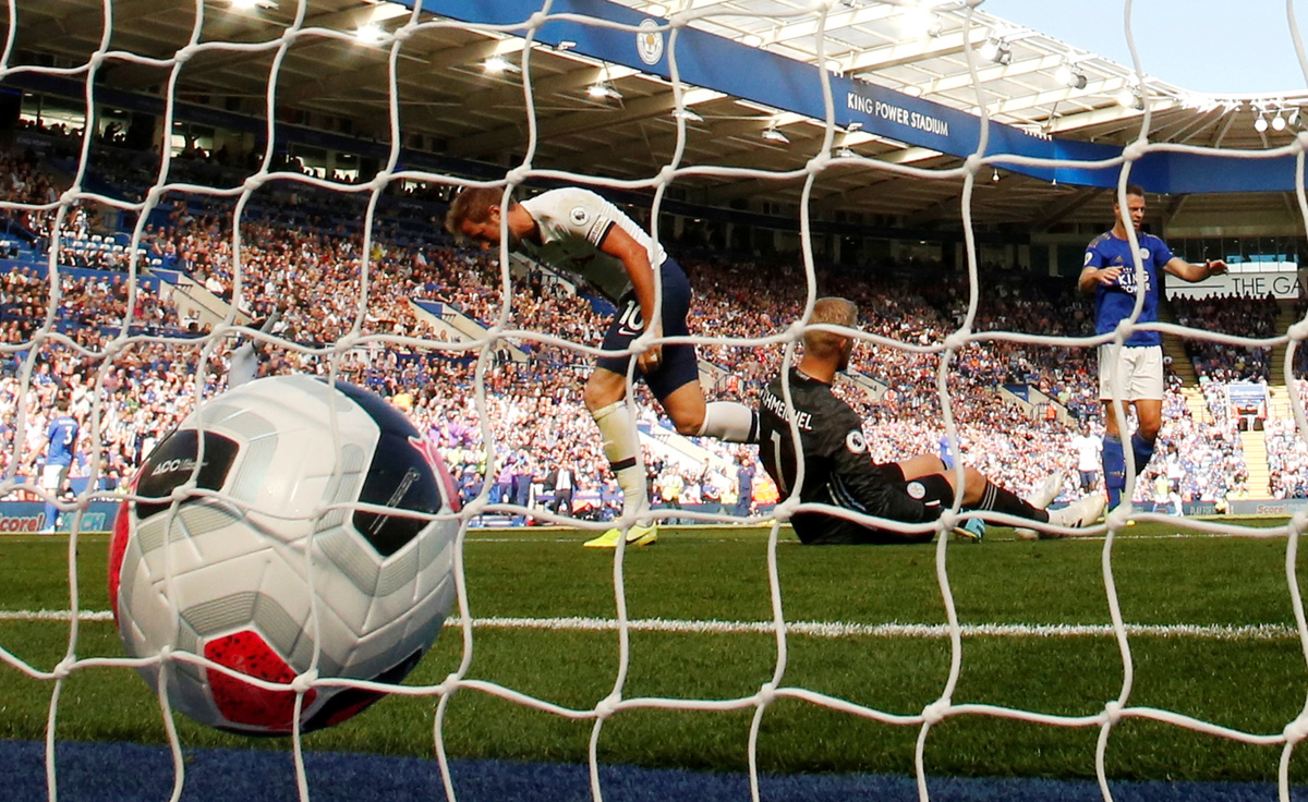 Soccer Football - Premier League - Leicester City v Tottenham Hotspur - King Power Stadium, Leicester, Britain - September 21, 2019 Tottenham Hotspur's Harry Kane scores their first goal Action Images via Reuters/Andrew Boyers
