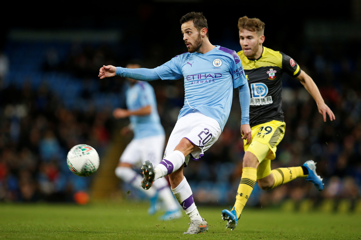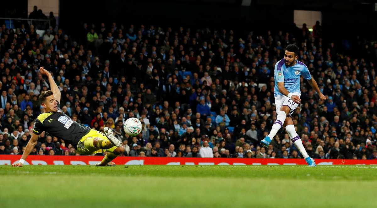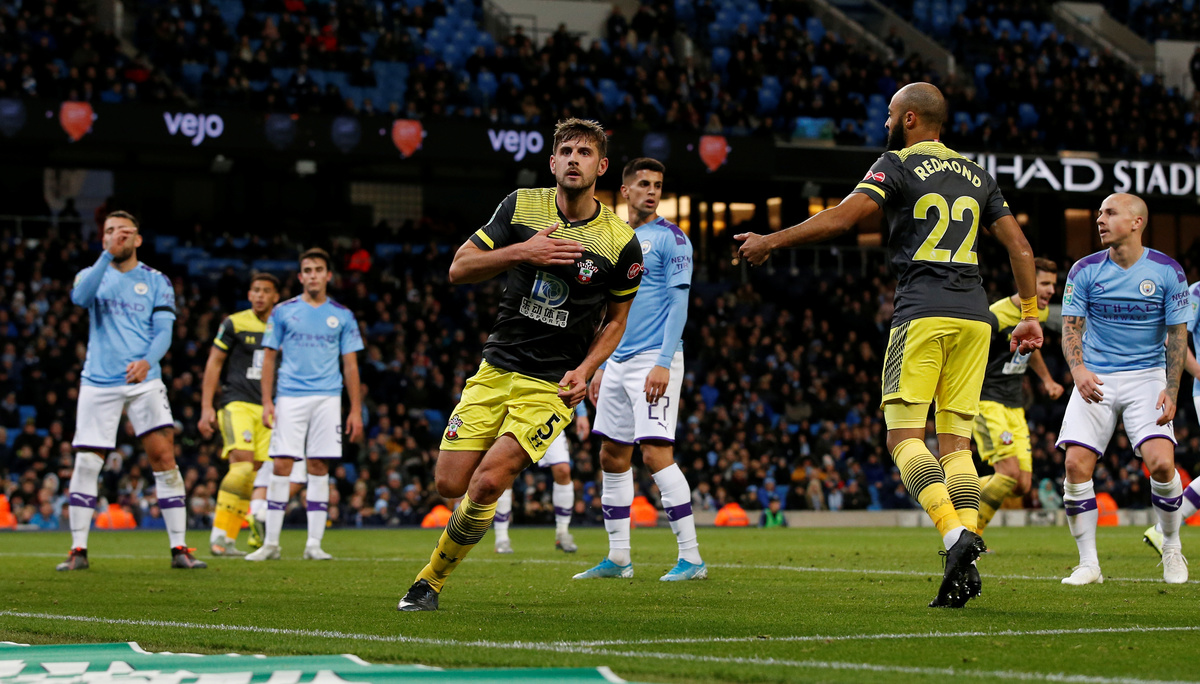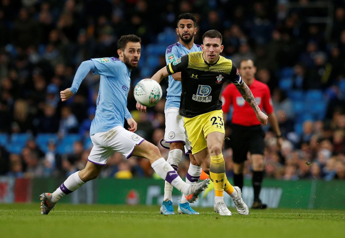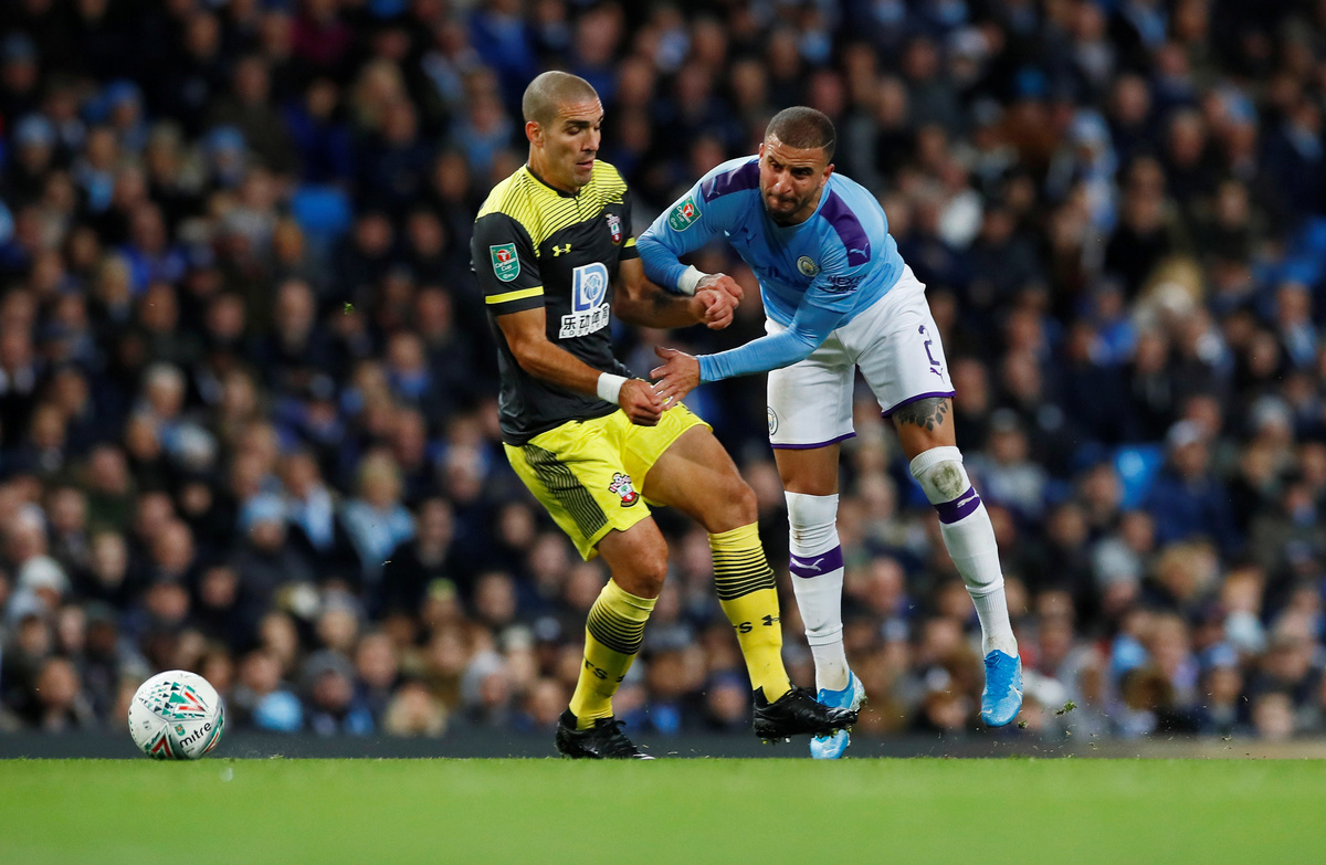 Soccer Football - Carabao Cup - Fourth Round - Manchester City v Southampton - Etihad Stadium, Manchester, Britain - October 29, 2019 Manchester City's Kyle Walker in action with Southampton's Oriol Romeu Action Images via Reuters/Jason Cairnduff Soccer Football - Carabao Cup - Fourth Round - Manchester City v Southampton - Etihad Stadium, Manchester, Britain - October 29, 2019 Manchester City's Phil Foden in action with Southampton's James Ward-Prowse Action Images via Reuters/Jason Cairnduff Soccer Football - Carabao Cup - Fourth Round - Manchester City v Southampton - Etihad Stadium, Manchester, Britain - October 29, 2019 Manchester City's Riyad Mahrez shoots at goal Action Images via Reuters/Jason Cairnduff Soccer Football - Carabao Cup - Fourth Round - Manchester City v Southampton - Etihad Stadium, Manchester, Britain - October 29, 2019 Manchester City's Bernardo Silva in action with Southampton's Alex McCarthy Action Images via Reuters/Jason Cairnduff Soccer Football - Carabao Cup - Fourth Round - Manchester City v Southampton - Etihad Stadium, Manchester, Britain - October 29, 2019 Manchester City's Riyad Mahrez shoots at goal REUTERS/Andrew Yates Soccer Football - Carabao Cup - Fourth Round - Manchester City v Southampton - Etihad Stadium, Manchester, Britain - October 29, 2019 Manchester City manager Pep Guardiola talks to Kyle Walker Action Images via Reuters/Jason Cairnduff Soccer Football - Carabao Cup - Fourth Round - Manchester City v Southampton - Etihad Stadium, Manchester, Britain - October 29, 2019 Manchester City's Nicolas Otamendi scores their first goal REUTERS/Andrew Yates Soccer Football - Carabao Cup - Fourth Round - Manchester City v Southampton - Etihad Stadium, Manchester, Britain - October 29, 2019 Southampton's Jack Stephens scores their first goal REUTERS/Andrew Yates Soccer Football - Carabao Cup - Fourth Round - Manchester City v Southampton - Etihad Stadium, Manchester, Britain - October 29, 2019 Manchester City's Angelino Action Images via Reuters/Jason Cairnduff Soccer Football - Carabao Cup - Fourth Round - Manchester City v Southampton - Etihad Stadium, Manchester, Britain - October 29, 2019 Southampton's Pierre-Emile Hojbjerg in action with Manchester City's Bernardo Silva and Riyad Mahrez REUTERS/Andrew Yates