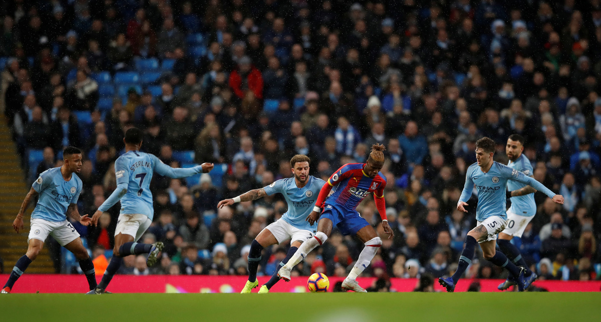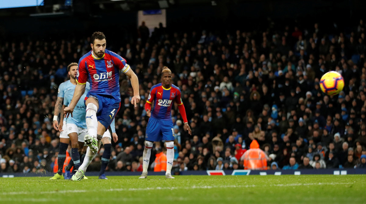 Luka Milivojevic put the visitors further clear with a penalty after the break before Palace survived a late onslaught that saw Kevin De Bruyne score five minutes from time.