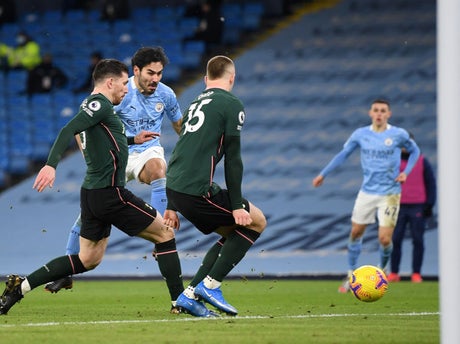 This was the least City-like goal imaginable but that made it all the more special. It was lump it, route one stuff with its own Guardiola spin - not meat and potatoes but meat and patatas bravas - and demonstrated that this brilliant side which is surging towards a third Premier League title in four years can score in any way they want.