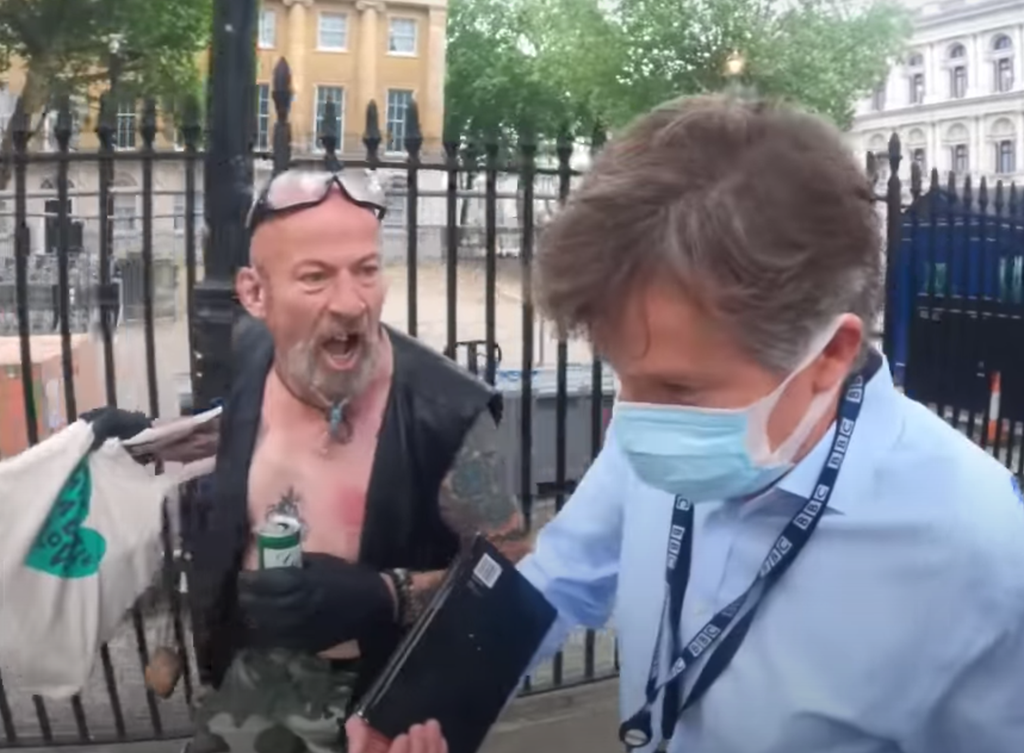 Mr Watt, who was wearing a BBC lanyard, was forced to run through the mob beyond a line of police officers as people shouted at him.