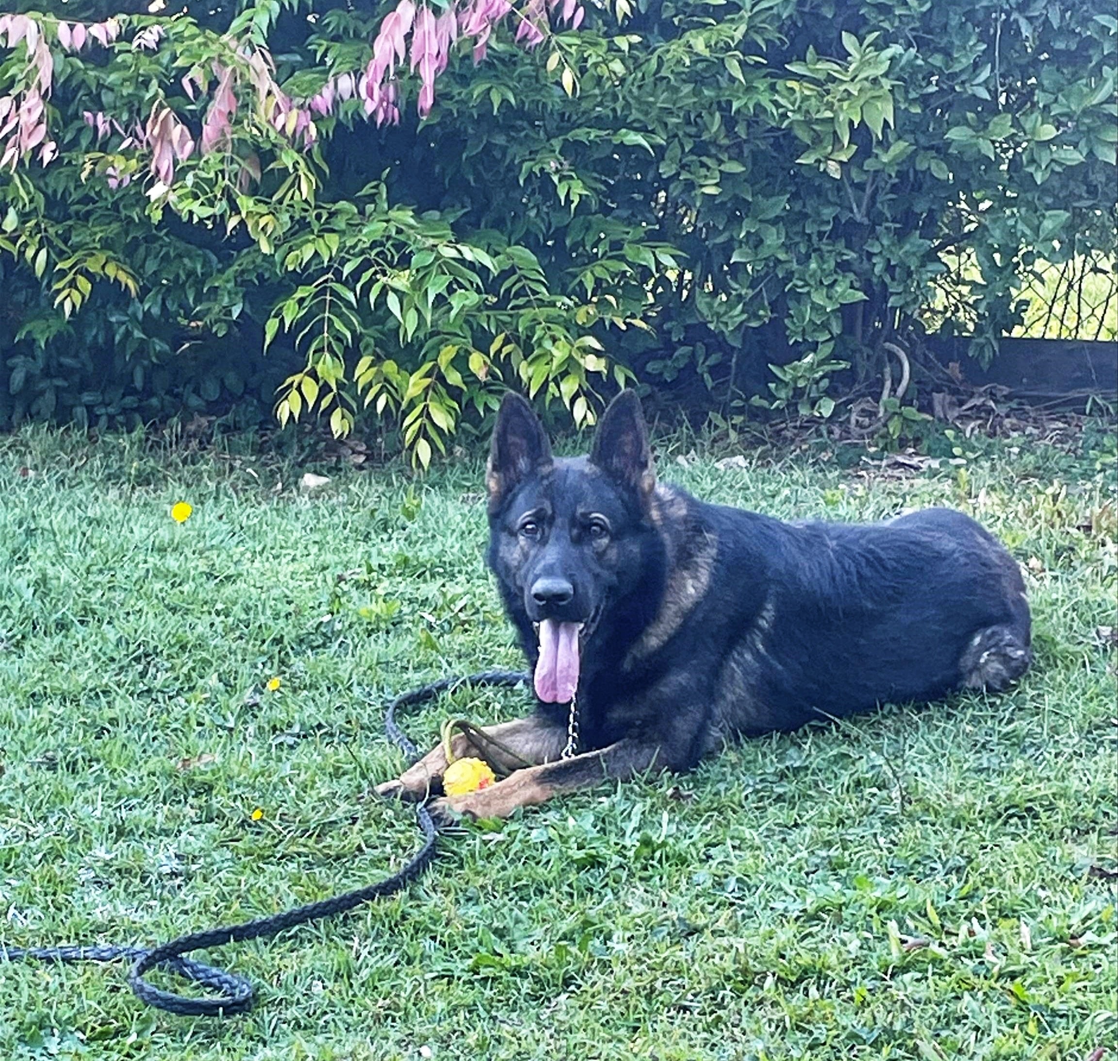 The dog's lead slipped through the hands of his handler while tracking an alleged car thief in dense bush in Redbank Plains in the early hours of January 11.