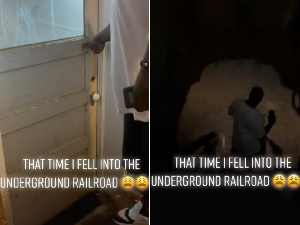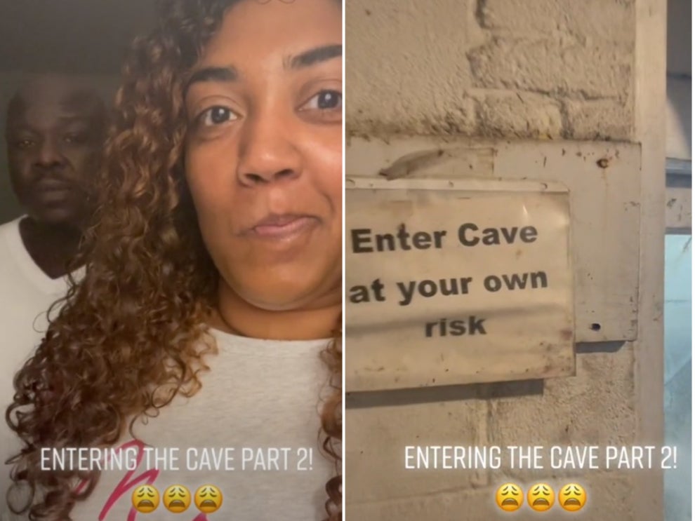 (Left) The door that the TikTokers enter to discover the 30ft cave (Right)