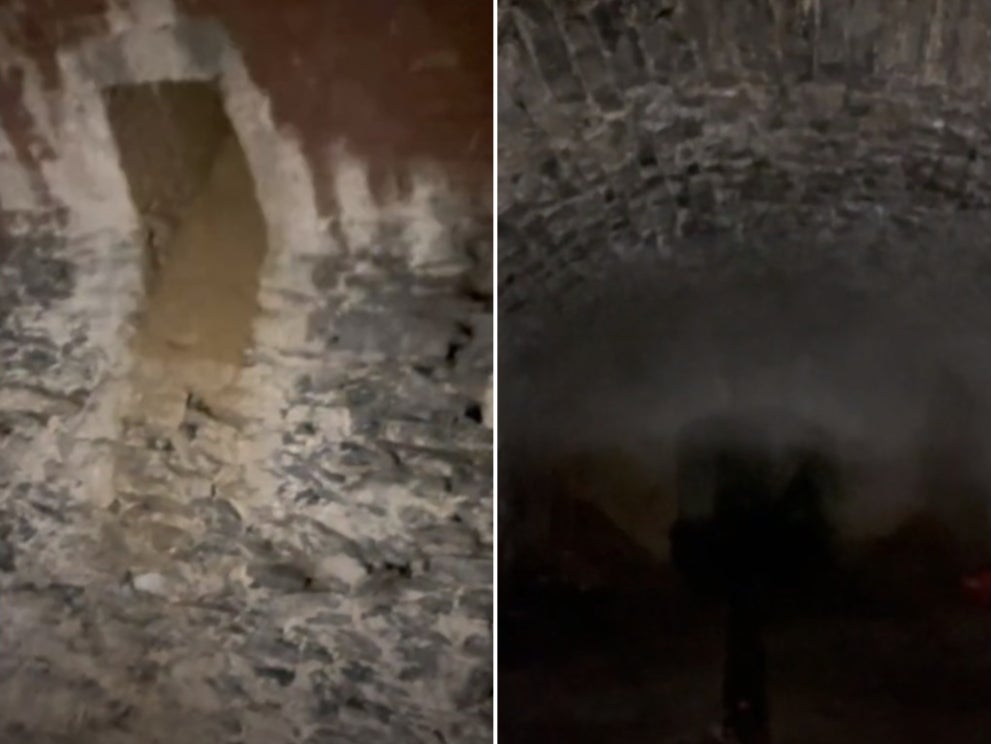 (Picture: TikTok/moodycakes)A man has uncovered an abandoned railway after venturing down a staircase to a 30ft cave beneath his home.