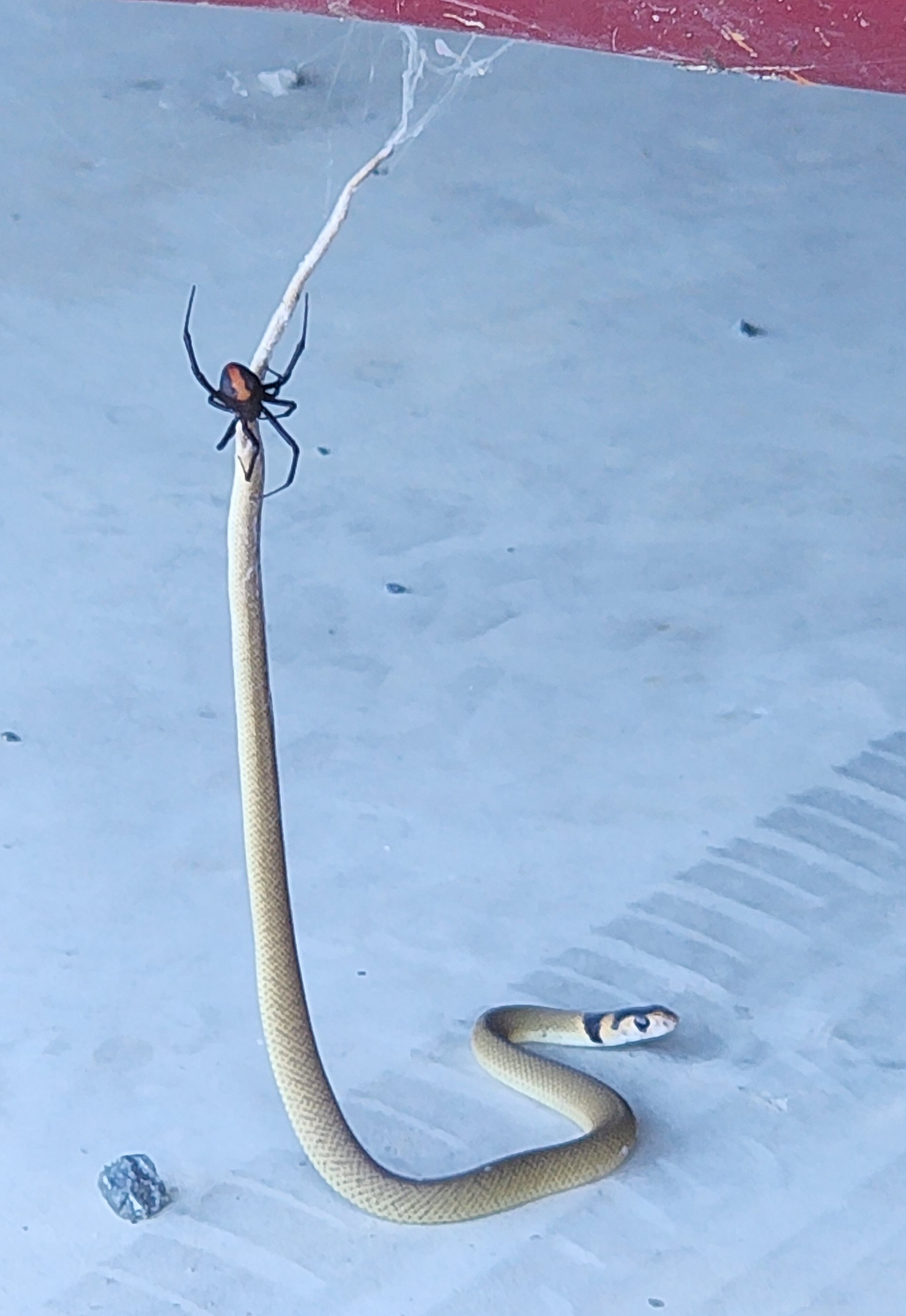 "The next thing I saw, there was a redback just part-way down the tail of the snake."