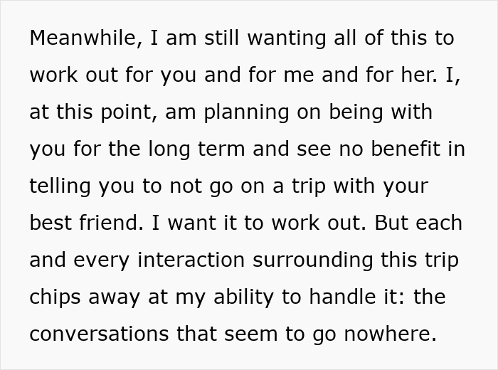 However, for this couple, the boyfriend’s female best friend was the catalyst for their breakup. After the woman was uninvited from a week-long vacation so that her boyfriend could go on holiday with his female bestie, she had had enough. “I am not happy in this, and I do not want to feel these feelings any longer,” she wrote in a revealing email she sent to her BF.