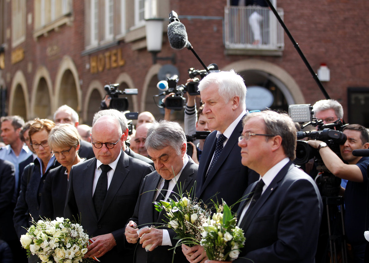 Seehofer described the attack as a "cowardly and brutal crime". He, Laschet and Reul laid flowers in central Muenster and paid their respects to the victims of the attack.