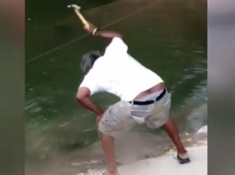 According to Austin police, witnesses, one of whom filmed the incident, said Washington's friend pulled the turtle to shore with a hammer after it became caught in his line. Washington then took up the tool and used the blunt end to hit the turtle while it was still attached to the fishing line, Fox 7 reports.
