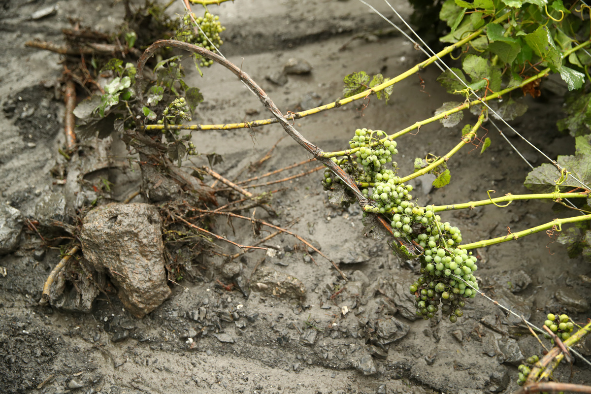 Mud is pictured in a wineyard next to the Losentze river after a flash flood in Chamoson, Switzerland, August 12, 2019. REUTERS/Denis Balibouse