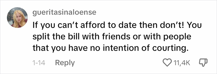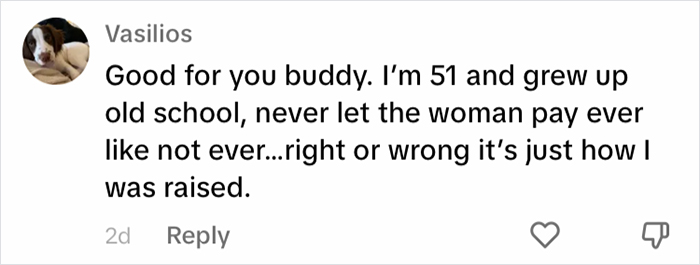 Some comments defended him, arguing that it was just a first date. Why exactly should she feel entitled to a free meal, with sides, for showing up? If she is the kind of person who expects to be paid for during a date, that’s fair enough, it’s her prerogative. However, arguing about it later is simply petty, unless she truly wanted him to, for example, Venmo her the money. In a sense, this experience is the perfect example of why people have first dates. It’s better to understand that you aren’t compatible.
