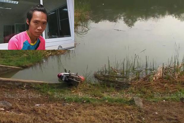Earlier, a motorcycle was found in Huay Sai reservoir in Mae Mo district on Thursday. A local resident who found the vehicle alerted the village head, who immediately contacted police for fear the rider might have drowned.