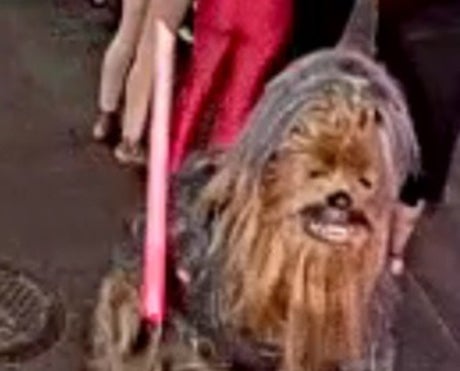 NOPD posted a picture on social media of the suspect wearing the full costume, including the head, and carrying a red lightsaber.