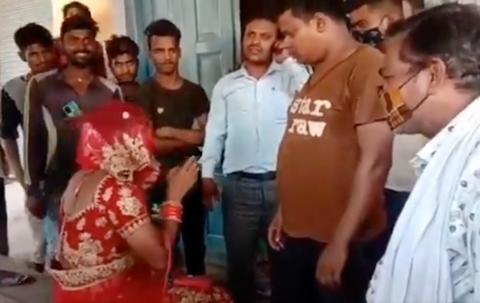 Footage which is reportedly from a village in Bhadohi district of Uttar Pradesh, a state in the north of India, shows a man, dressed as a woman, on his knees while being confronted by a group of men.