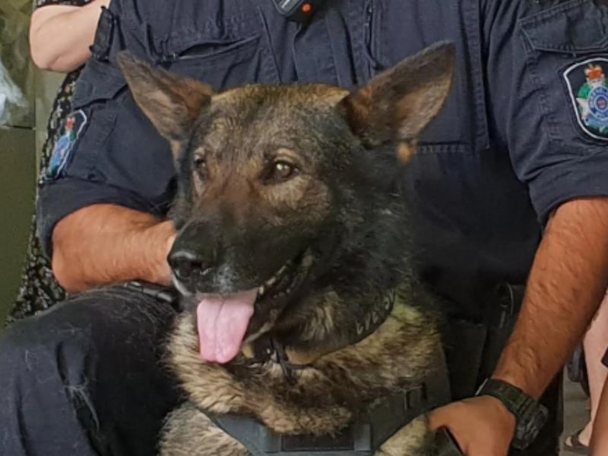 His handler performed first aid before Kaos was taken to an emergency vet surgery for treatment.