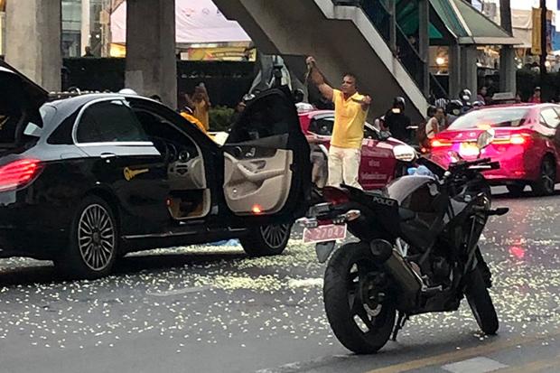 Jor Sor 100 traffic radio reported the man stopped his Mercedes in the middle of Ratchadamri Road in front of the CentralWorld shopping centre and emerged from the car with a cobra and a knife.