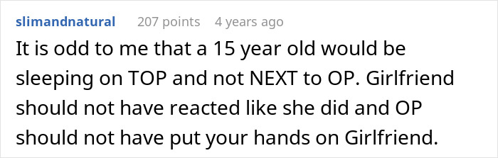 But when his girlfriend found the siblings sleeping on the same couch, she blew up at them