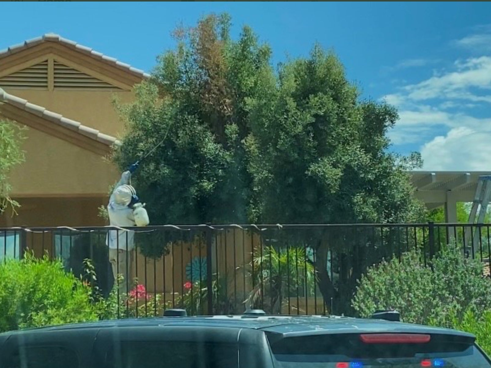 The fire department received the call around noon on Thursday after reports of a bee swarm with at least six people stung. They described it as “a large open hive, estimated around 100 pounds, was located in a tree nearby.”