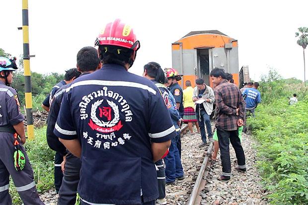 The incident occurred at the railway crossing near a bridge in tambon Nong Kob, said Pol Col Surachai Boon-in, a duty-officer at Ban Pong police station, who was reported at around 6.30am.