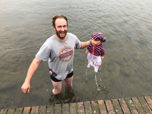 He said the water was "absolutely freezing" and he "was in there for a good few minutes" before he reached the doll.