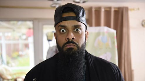 An alternative is to engage with racist or Islamophobic stereotypes by having them voiced or embodied by ethnic or religious minority characters, effectively legitimising the laughter. This can come across as lazy and conservative – and Khan himself distances himself from the likes of Adil Ray’s Citizen Khan for reiterating the same stereotypes circulating since the 1970s, asking people to “laugh at us rather than laugh with us”.