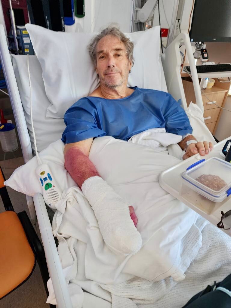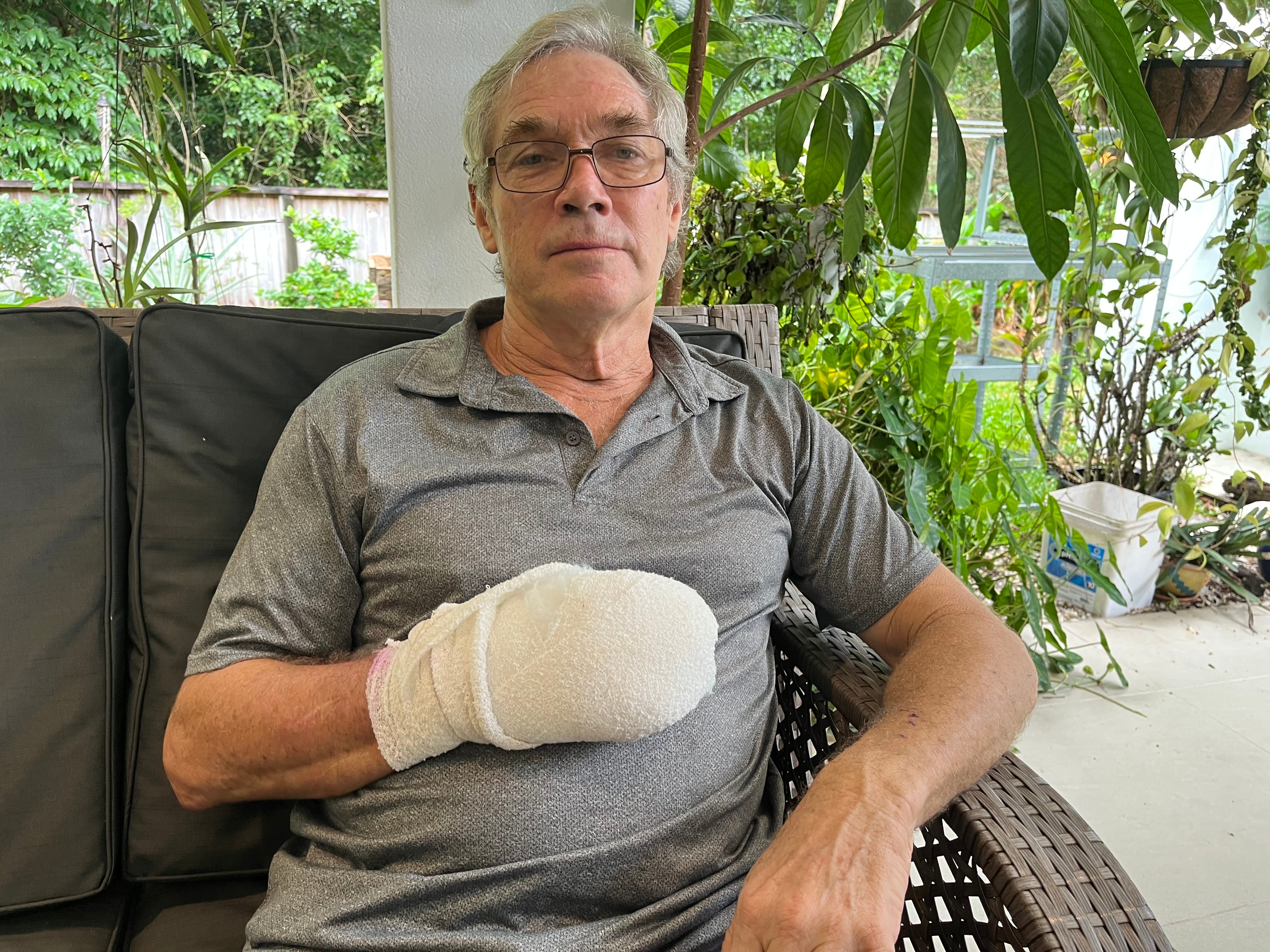 Mr Stevens, who plays trombone in a brass band and owns a marine upholstery business, was taken by ambulance to the Cairns Hospital where he underwent surgery last Tuesday.