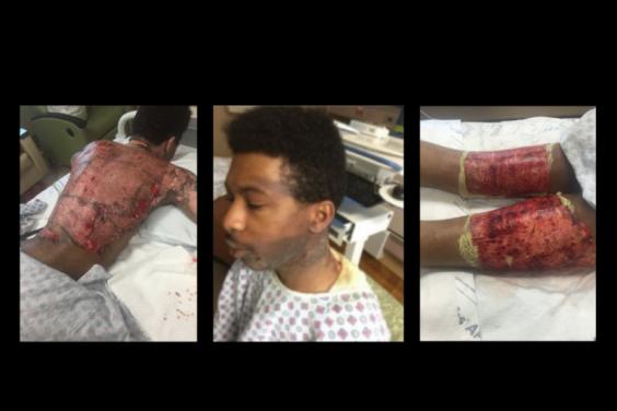 Mr Tolbert spent ten days at Grady Memorial Hospital undergoing surgery that took skin from his thigh to replace skin on his back.