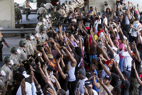 On Twitter, the department disputed some of the claims made by protesters: "The investigation just started, but based on the video voluntarily provided by a witness, the subject did NOT have his hands up in the air."