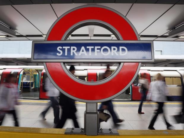 The station is near Stratford Westfield shopping centre and is part of a busy transport hub.