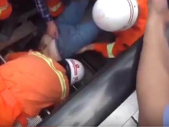 The workman, who was repairing the device in Beibei District of Chongqing in south-west China, was accidently sucked into the escalator after it “suddenly became operational”.