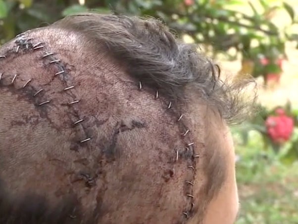 “It hit me twice, once right here and once right here and I think my hand might have protected my face ‘cause I got a puncture wound on the top [and] a puncture wound on the bottom,” Heim told Fox35 about the injuries.