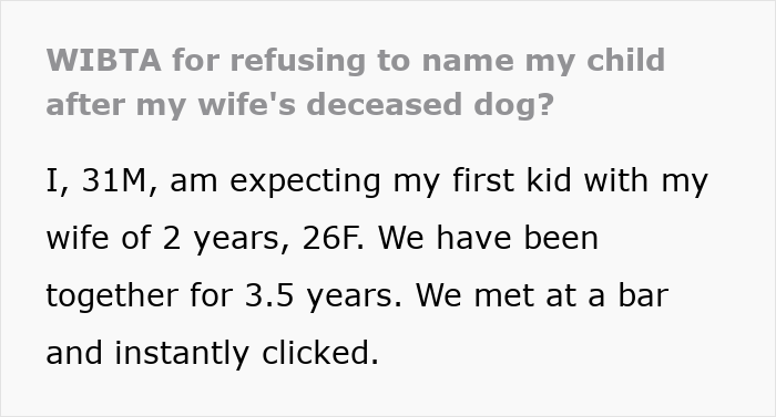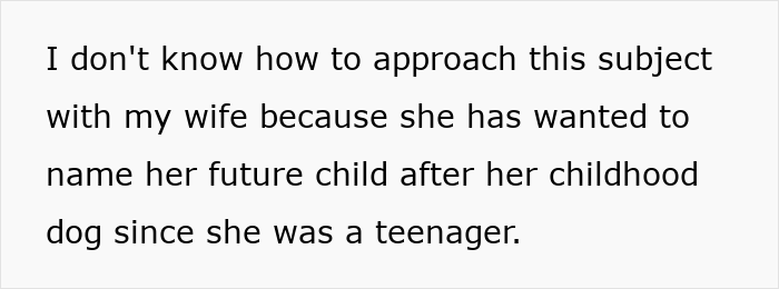 In this story, today’s Original Poster (OP) found himself stuck in a surprisingly delicate dilemma when his wife wanted to name their baby after her beloved, long-departed dog. He understood it was out of fondness, but for him, it didn’t seem like it was a good idea, causing some friction between them.