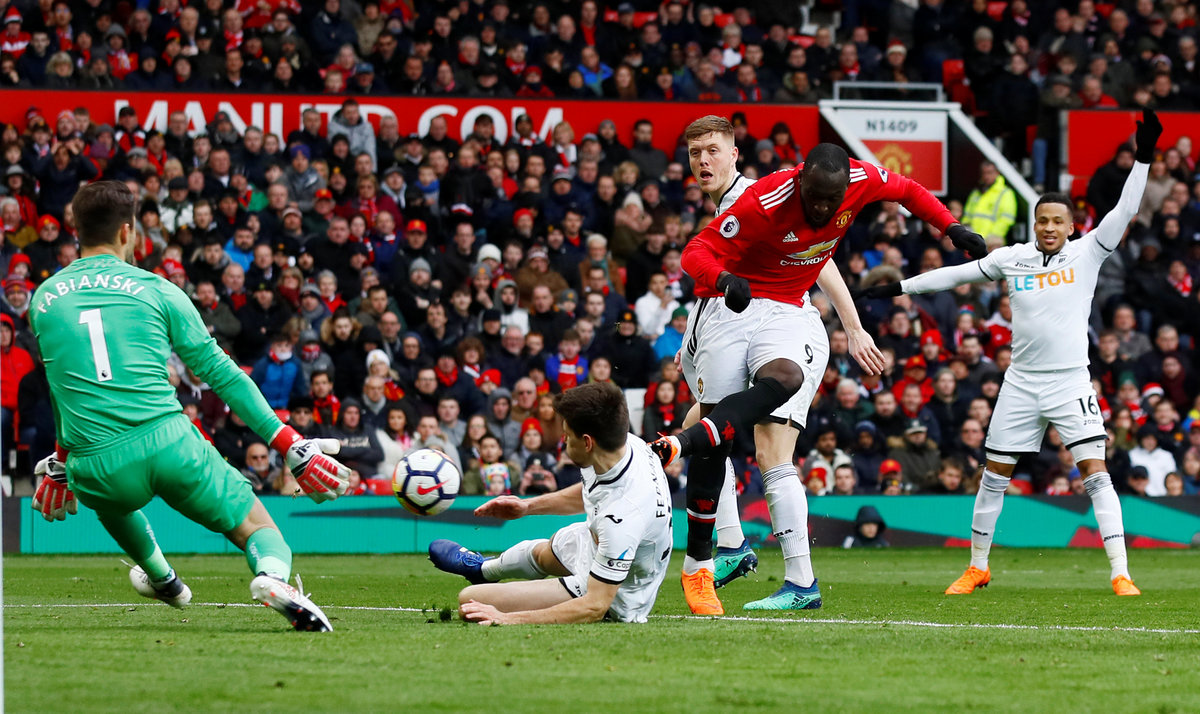 Romelu Lukaku reached 100 league goals by scoring in the first five minutes as United dominated a Swansea side who have been revitalised under manager Carlos Carvalhal.