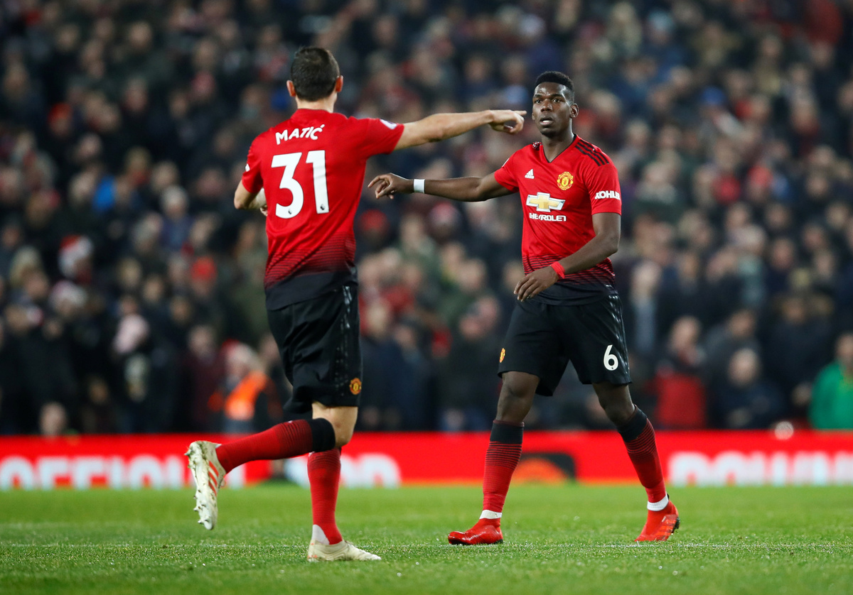 Soccer Football - Premier League - Manchester United v Huddersfield Town - Old Trafford, Manchester, Britain - December 26, 2018 Manchester United's Paul Pogba and Nemanja Matic Action Images via Reuters/Jason Cairnduff