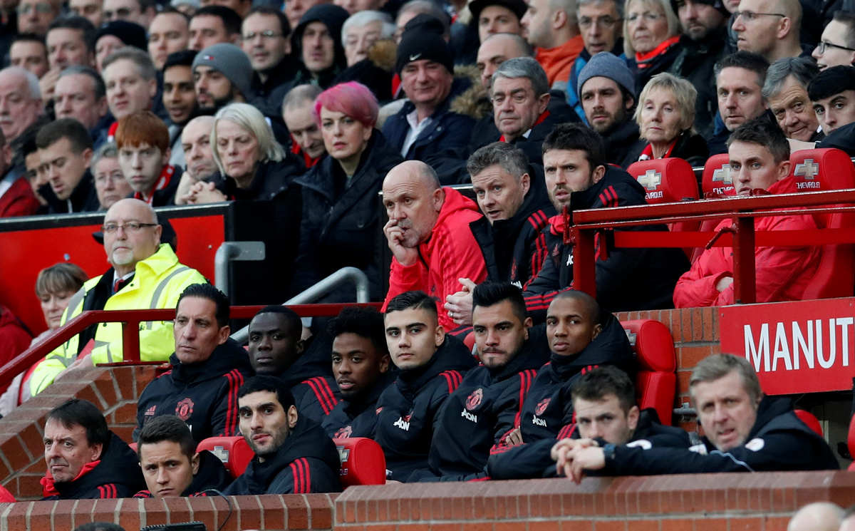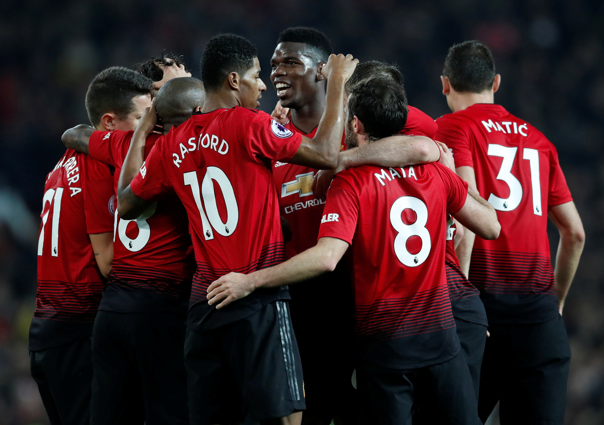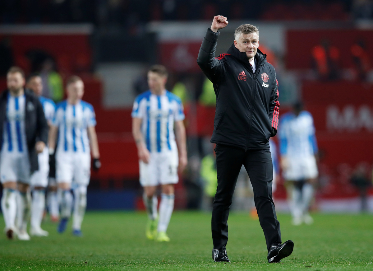 Soccer Football - Premier League - Manchester United v Huddersfield Town - Old Trafford, Manchester, Britain - December 26, 2018 Manchester United interim manager Ole Gunnar Solskjaer celebrates after the match REUTERS/David KleinSoccer Football - Premier League - Manchester United v Huddersfield Town - Old Trafford, Manchester, Britain - December 26, 2018 Manchester United's Paul Pogba celebrates scoring their third goal with team mates .REUTERS/David KleinSoccer Football - Premier League - Manchester United v Huddersfield Town - Old Trafford, Manchester, Britain - December 26, 2018 Manchester United's Paul Pogba celebrates scoring their second goal.REUTERS/David KleinSoccer Football - Premier League - Manchester United v Huddersfield Town - Old Trafford, Manchester, Britain - December 26, 2018 Manchester United's Nemanja Matic scores their first goal.Action Images via Reuters/Jason CairnduffSoccer Football - Premier League - Manchester United v Huddersfield Town - Old Trafford, Manchester, Britain - December 26, 2018 Huddersfield Town's Isaac Mbenza in action with Manchester United's Diogo Dalot. REUTERS/David KleinSoccer Football - Premier League - Manchester United v Huddersfield Town - Old Trafford, Manchester, Britain - December 26, 2018 Manchester United scarves for sale outside the stadium before the match.REUTERS/David KleinSoccer Football - Premier League - Manchester United v Huddersfield Town - Old Trafford, Manchester, Britain - December 26, 2018 Manchester United interim manager Ole Gunnar Solskjaer.REUTERS/David Klein Soccer Football - Premier League - Manchester United v Huddersfield Town - Old Trafford, Manchester, Britain - December 26, 2018 Manchester United interim manager Ole Gunnar Solskjaer on the cover of the match day programme before the match. REUTERS/David KleinSoccer Football - Premier League - Manchester United v Huddersfield Town - Old Trafford, Manchester, Britain - December 26, 2018 Scarves for sale outside the stadium before the match.REUTERS/David Klein