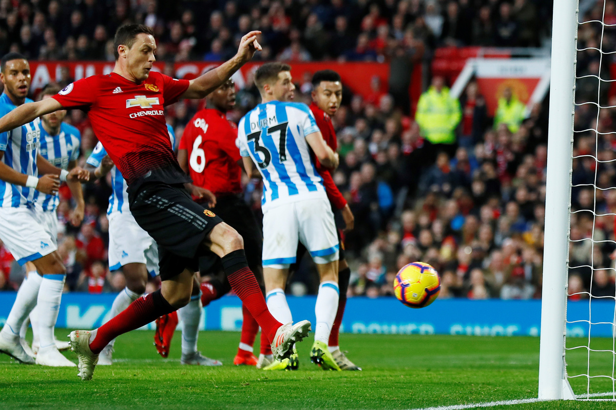 Soccer Football - Premier League - Manchester United v Huddersfield Town - Old Trafford, Manchester, Britain - December 26, 2018 Manchester United's Nemanja Matic scores their first goal . Action Images via Reuters/Jason Cairnduff