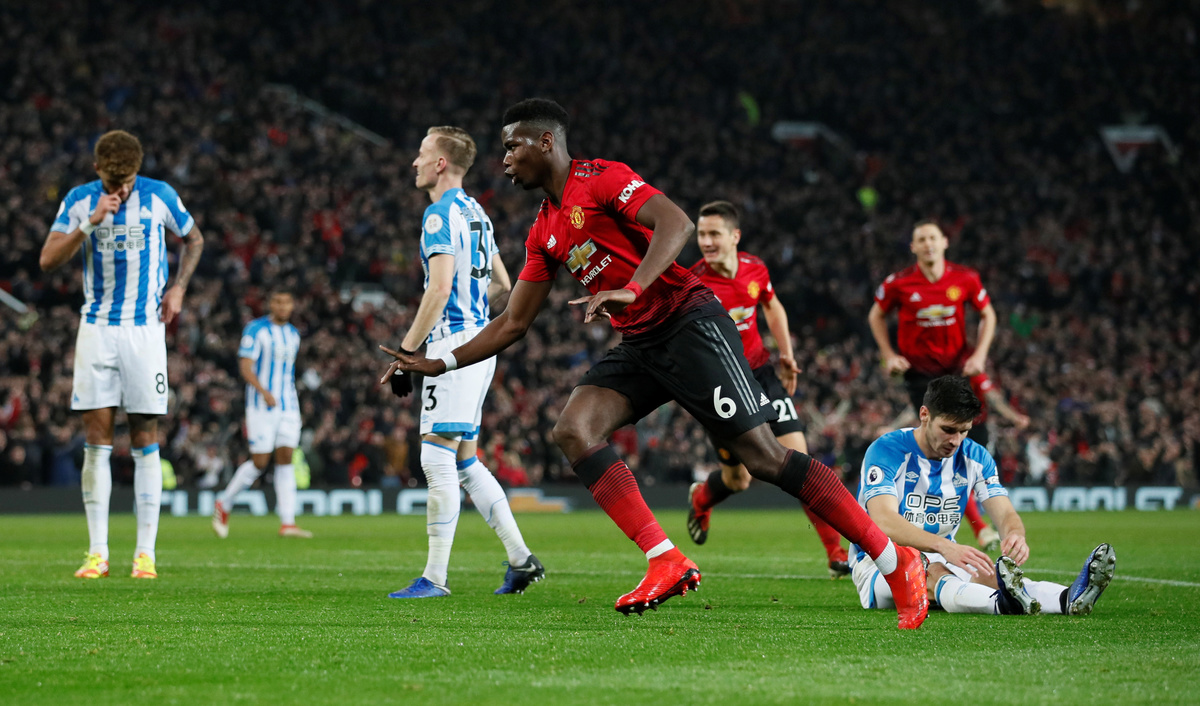 United goalkeeper David De Gea denied striker Laurent Depoitre with an excellent save shortly after the break before Pogba made it 2-0 with a fierce low drive from 13 metres to cap a flowing 64th-minute move.