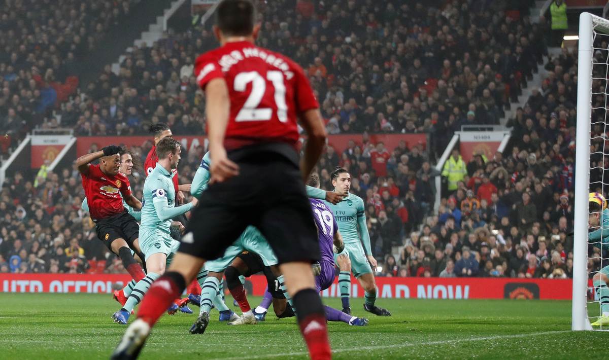 Shkodran Mustafi headed the Gunners in front after 26 minutes but Anthony Martial pounced four minutes later with his seventh goal in his last eight league matches.