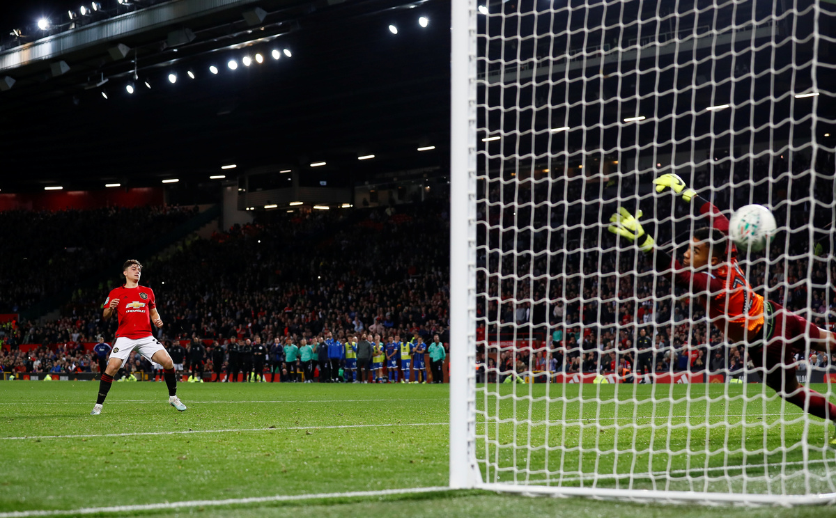 United prevailed, though, keeper Sergio Romero making one save to spare their blushes as the hosts successfully converted all their spot-kicks with Welsh winger Daniel James slotting home the winner.