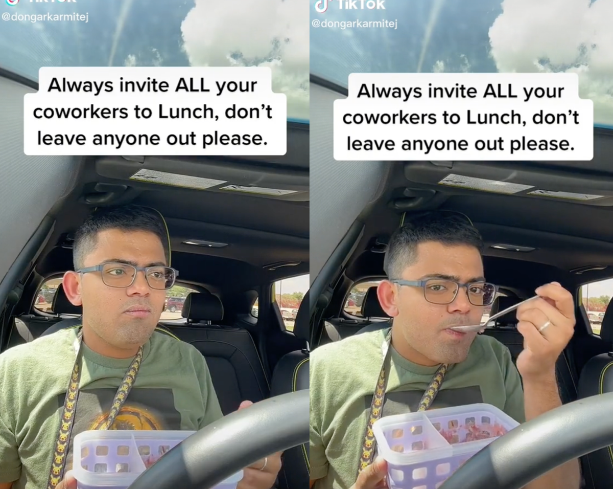“Always invite ALL your coworkers to lunch,” he wrote in a text caption on the video. “Don’t leave anyone out, please.”