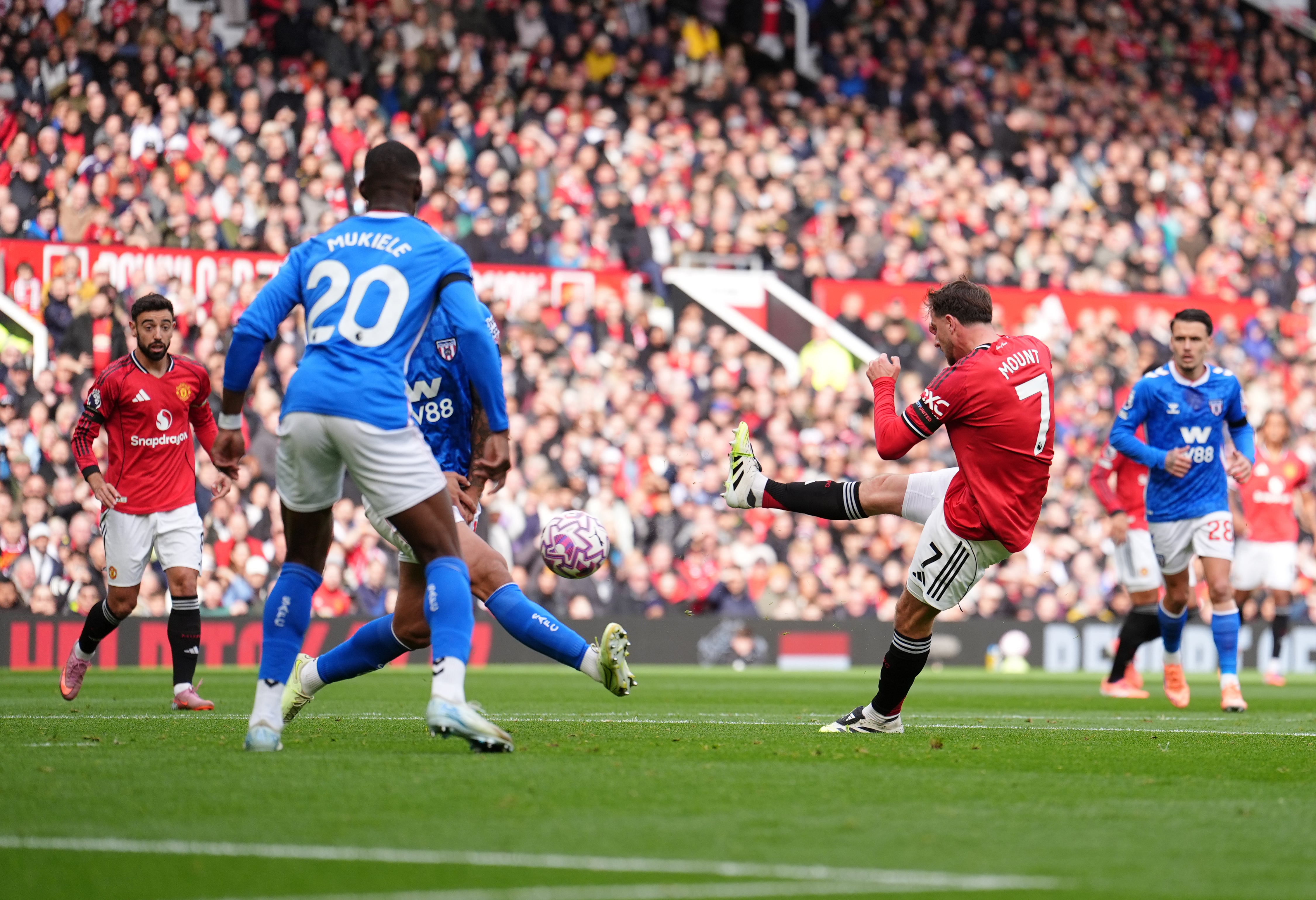 Bryan Mbeumo sent over a cross that Mount brought down smartly and finished in equally impressively fashion, with his low right-footed strike finding the net in front of the Stretford End.